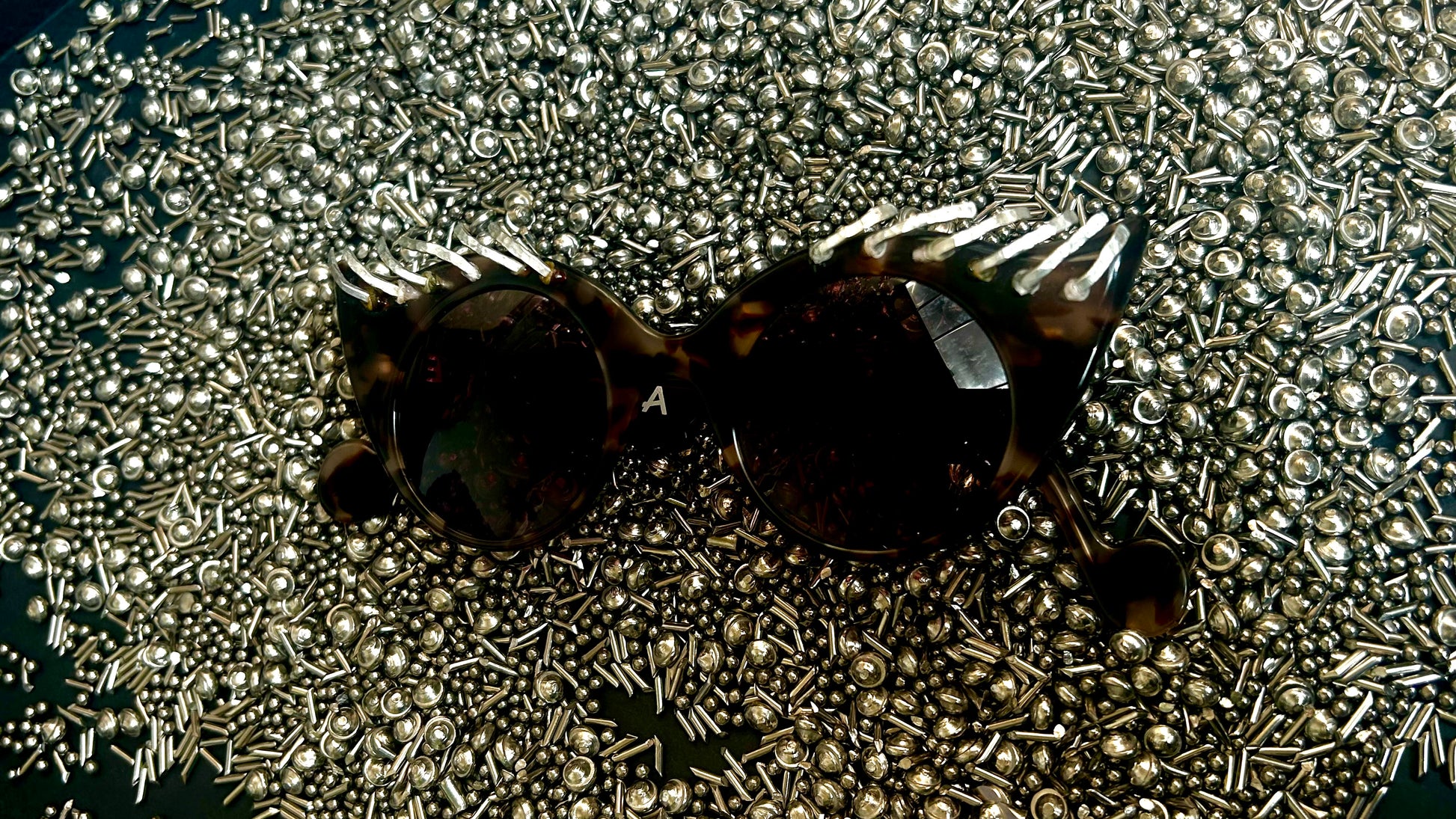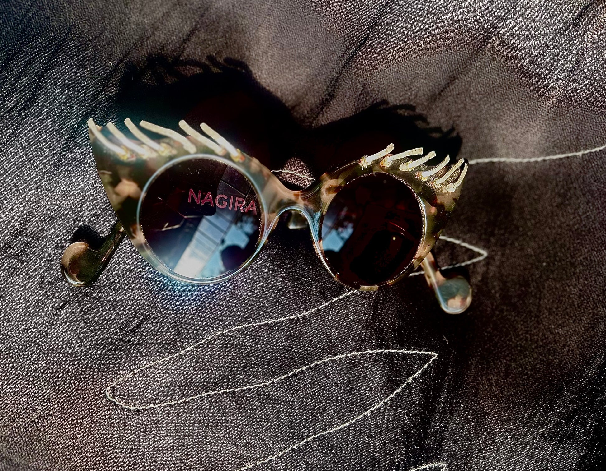 The bejeweled Birta has a one of a kind handcrafted aluminium accent on the bridge to make it even more quirky